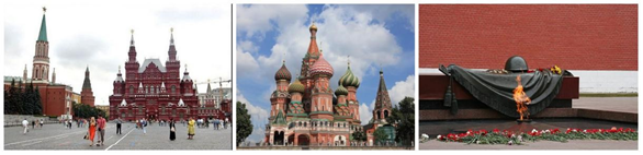 ² 早餐后,参观红场及周边景观(约1个小时)。红场是莫斯科的心脏,是俄罗斯重要节日举行群众集会和阅兵的地方,意为“美丽的广场”。红场周边景观有圣瓦西里升天大教堂(外观)、列宁墓(外观)列宁墓是存放无产阶级革命导师列宁遗体的地方。在列宁墓上层,修建有检阅台,见证了历史上著名的1941年红场大阅兵。1994年,列宁墓被联合国教科文组织确认为"世界历史文化遗产"。莫斯科最大的古姆百货商场、无名烈士墓、长明火、朱可夫雕像和国家历史博物馆(外观)。
