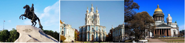 ² 午餐后游览,斯莫尔尼宫(外观,约30分钟)在1917年的十月革命之际,这里作为以列宁为核心的作战中枢,于10月25日宣告建立了苏维埃政权。1917年11月7日,列宁在斯莫尔尼会议大厅发表对俄国公民的号召书,宣布一切政权归苏维埃。至次年1918年将首都迁到莫斯科为止,这里一直作为苏维埃政权的中枢。这栋建筑位于宽阔的广场深处、绿意盎然的林荫道的尽头。大楼黄白相间的正面,在色彩鲜艳的修道院建筑衬托下显得分外严谨。伊萨教堂(外观,约20分钟),坐落在俄罗斯圣彼得堡市区,与梵蒂冈的圣彼得大教堂、伦敦的圣保罗大教堂和佛罗伦萨的花之圣母大教堂并称为世界四大圆顶教堂。